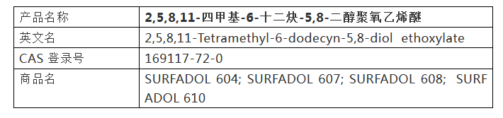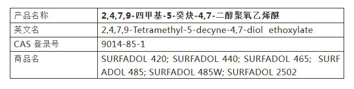 我司現(xiàn)在滿負(fù)荷生產(chǎn),可大量供應(yīng)以下品種的炔二醇表面活性劑。如果您需要用于水性體系的潤濕劑、消泡劑或分散劑,歡迎來電詳談。